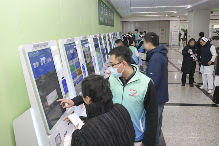 惊蛰时节乍暖还寒,志愿者们早早到岗到位,身着蓝绿相间的志愿马甲,分布在门诊大厅自助挂号打印区、入口引导岗、科室指引点等关键点位,全流程对接患者就医需求。针对老年患者不熟悉智能设备操作、就诊流程不清晰等实际痛点,志愿者们提供一对一专属帮扶,手把手指导老年群体完成挂号、缴费、检查报告单打印等全流程自助操作;同时主动向前为过往就诊群众答疑解惑,清晰告知科室方位、就诊注意事项,有效减少患者无效奔波,大幅提升就诊效率。